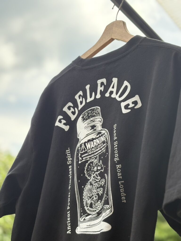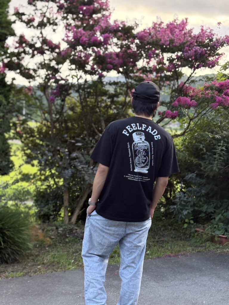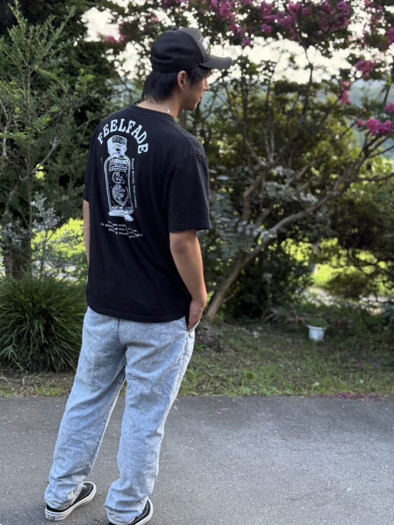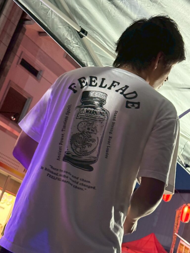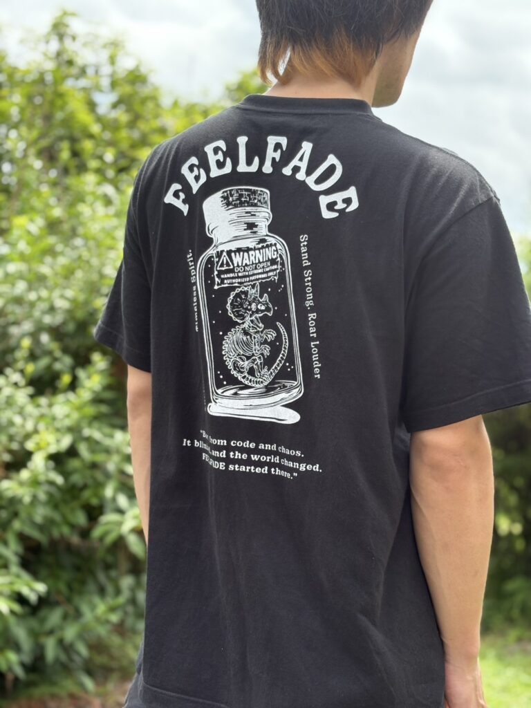 フロントはシンプルに「FEELFADE」の文字をアーチ状にデザイン。