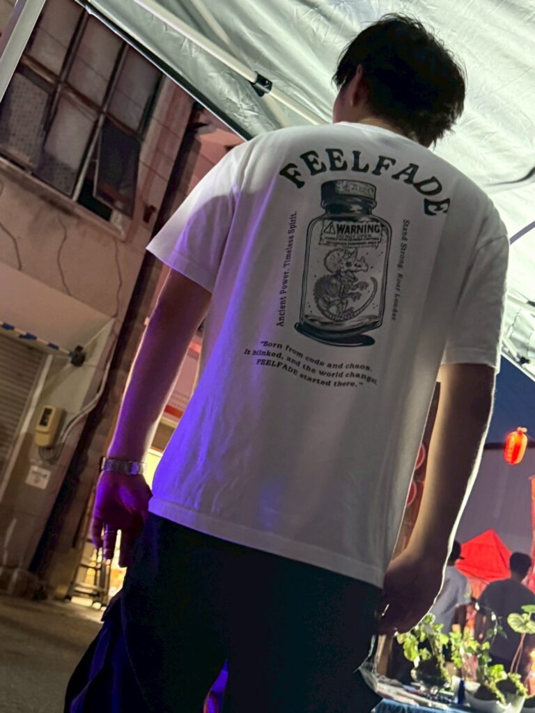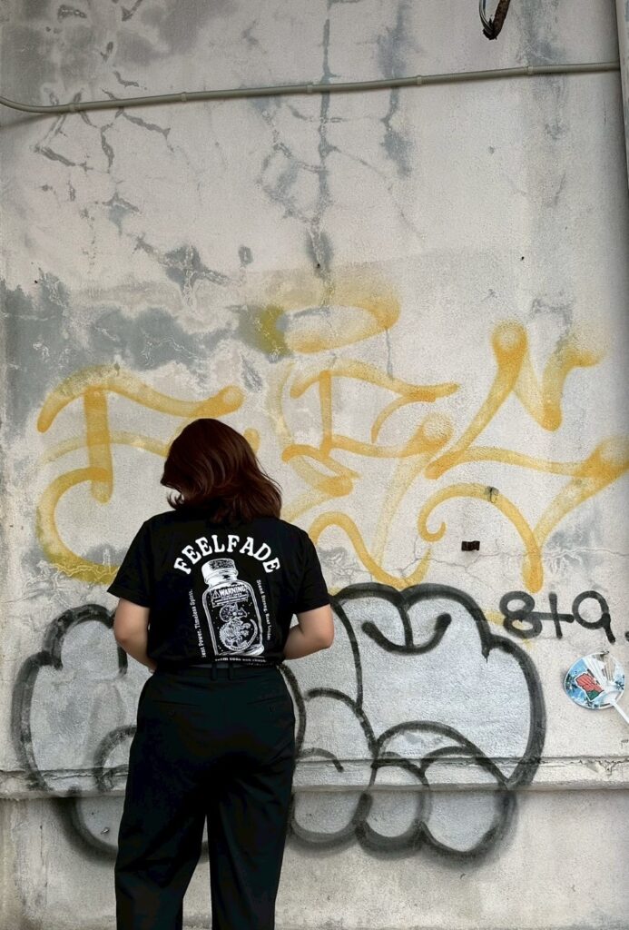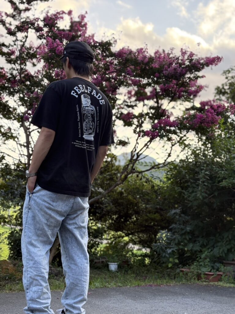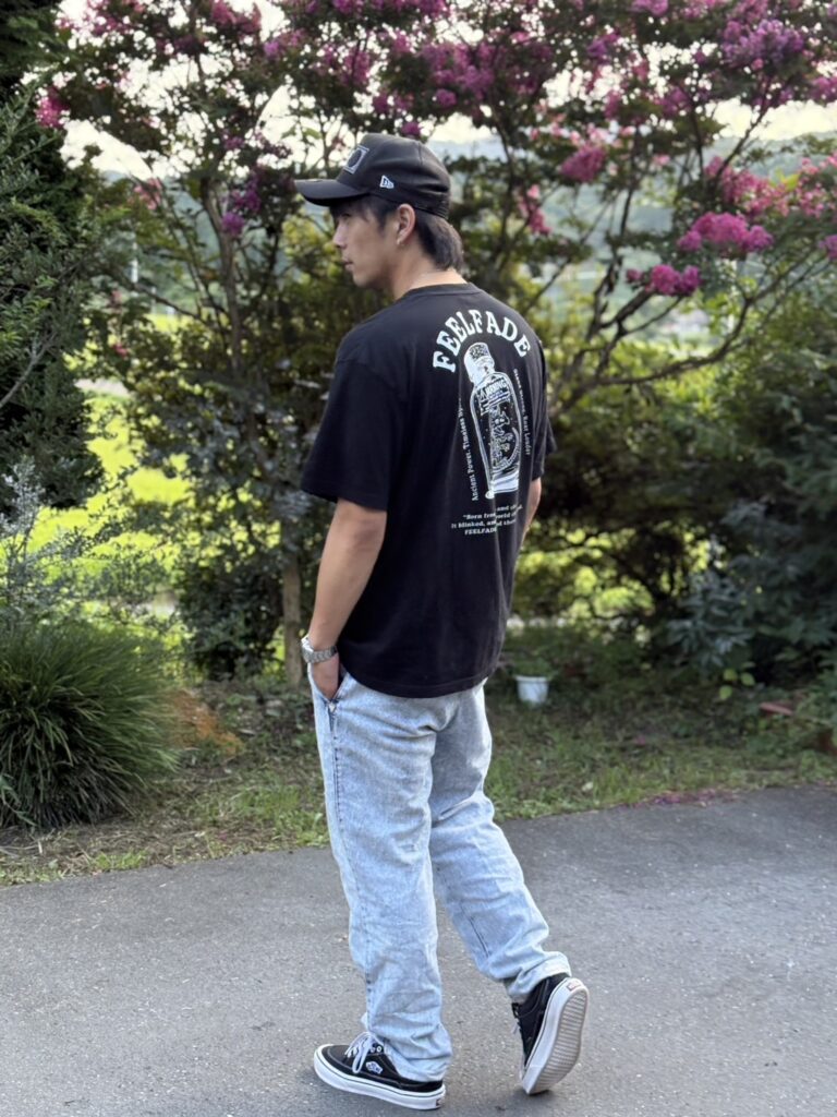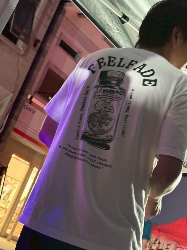 フロントはシンプルに「FEELFADE」の文字をアーチ状にデザイン。